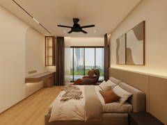 A modern open-plan living and dining area that emphasizes warmth, simplicity, and calm luxury. The palette blends beige, soft cream, and light wood tones, paired with matte black accents for contrast. The overall effect is elegant yet cozy — a harmonious balance between functionality and style.